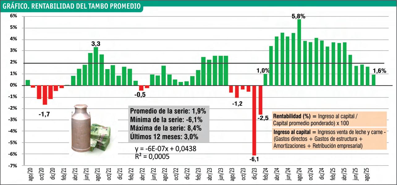 Otra realidad promisoria pero contrastante con el supuesto “desarrollo” de la lechería, es que las industrias lácteas se han visto beneficiadas por el incremento de los denominados “sólidos útiles” (grasa butirosa y proteína), que subieron un 12,4% respecto a ene-sep de 2024, superior a la suba de la producción en litros de leche, +10,5%, es decir con una mejor calidad composicional de leche.