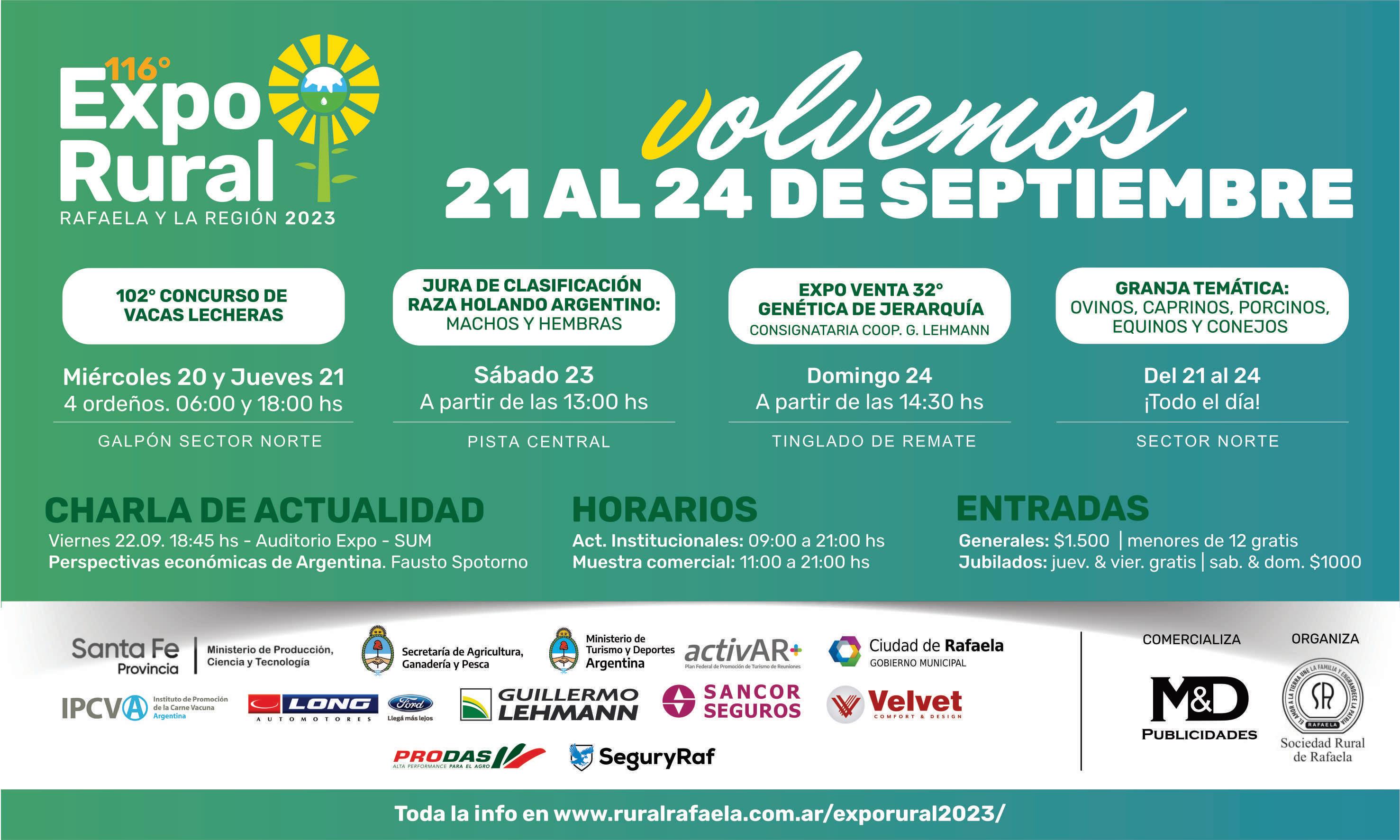 Amediados de agosto se presentó formalmente la 116° ExpoRural de Rafaela y la Región, la muestra más significativa del centro de la provincia de Santa Fe, que tendrá lugar en el corazón de la cuenca lechera del 21 al 24 de septiembre.