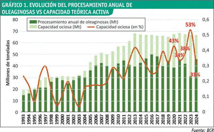 El complejo oleaginoso, siempre ha sido uno de los principales pilares económicos de todo el entramado industrial argentino. Durante el 2024, la intensidad del procesamiento de oleaginosas llegó hacia niveles máximos, codeándose con los mejores años.