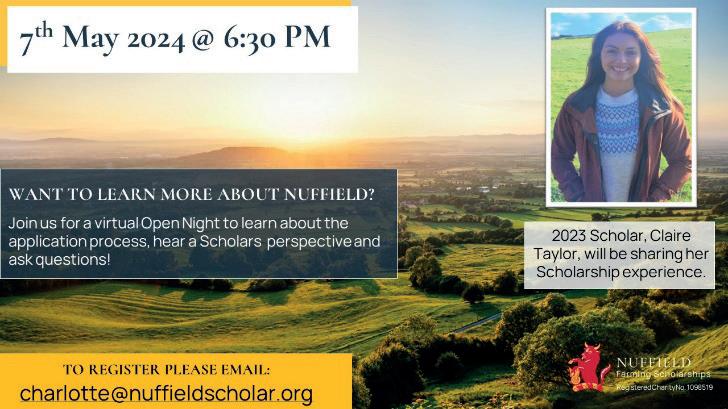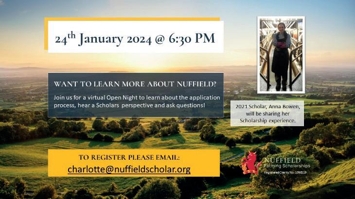 Each year Nuffield Farming Scholarships are awarded to deserving individuals working in farming, food, horticulture, and rural industries or are in a position to influence those who do - and are resident in the United Kingdom. They will have spent at least two years working in their current appointment, be at least three years since leaving full time education or study and be no more than 45 years old. Applications are made by 31st July each year via the website: www.nuffieldscholar.org.