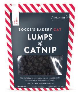 • Stuff your pet’s stocking with seasonal snacks like Bocce’s Bakery Holiday Feast treats for dogs and Lumps of Catnip treats for cats.