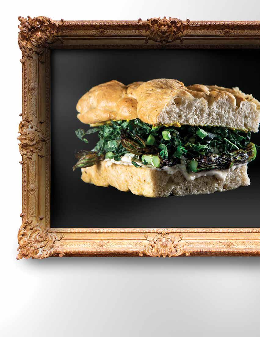 Chèvre, grilled asparagus, kale, preserved lemon and garlic mayo on focaccia.