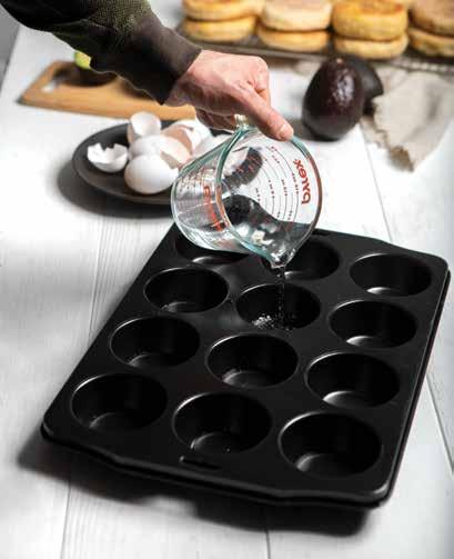 Use a rubber spatula to gently remove cooked eggs from the tin!