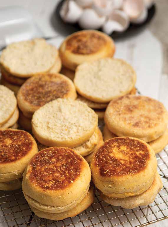Make these soft and chewy English muffins at home and enjoy them warm with butter or your favorite jam.