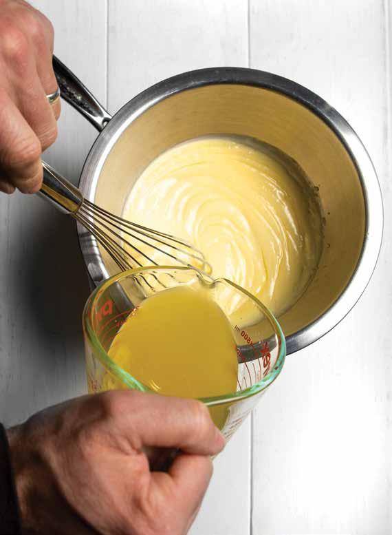 Set a pot filled with 2 inches of water to a gentle simmer. Whisk together the egg yolks, lemon juice and salt in a stainless steel bowl that fits into the pot without the bottom of the bowl touching the water. Reduce the heat to low and nestle the bowl into the pot. Continually whisk until the eggs start to thicken and they become pale yellow.