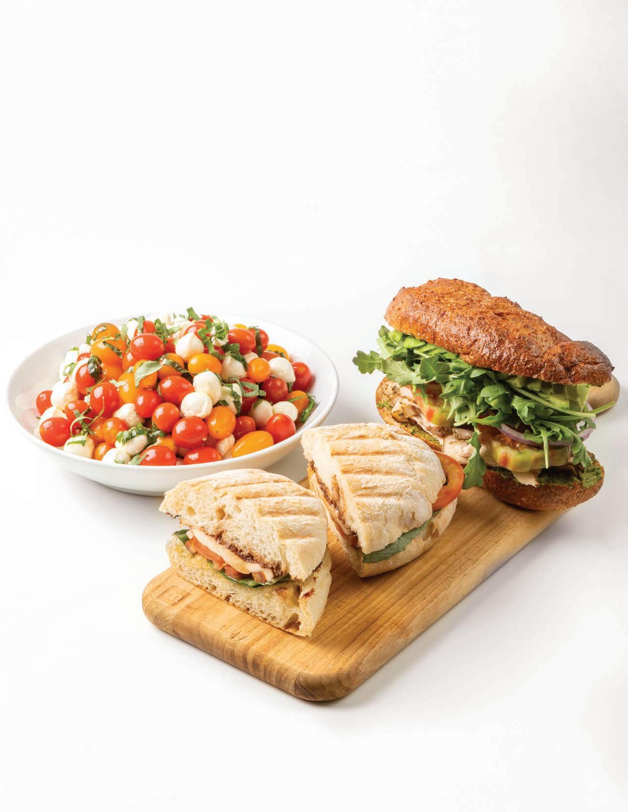 For a meatier option, try our chef–prepared turkey with heirloom tomato, avocado, arugula, red onion and basil pesto on a fresh–baked sprouted wheat roll.
