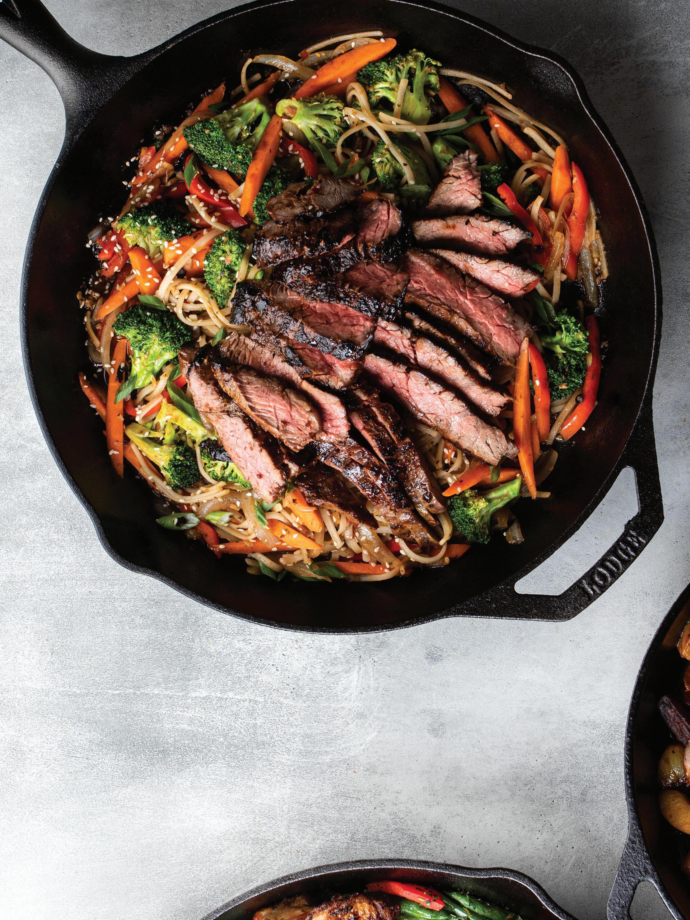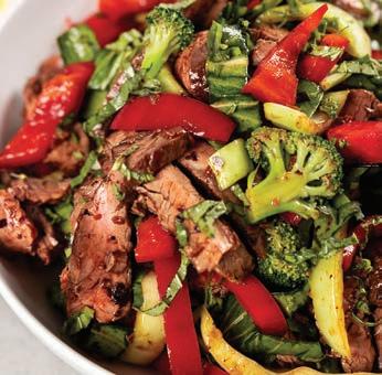 This Thai-inspired dish from our chefs stars marinated beef and stir-fried veggies like baby bok choy, red peppers and broccoli all combined with a black bean garlic sauce.