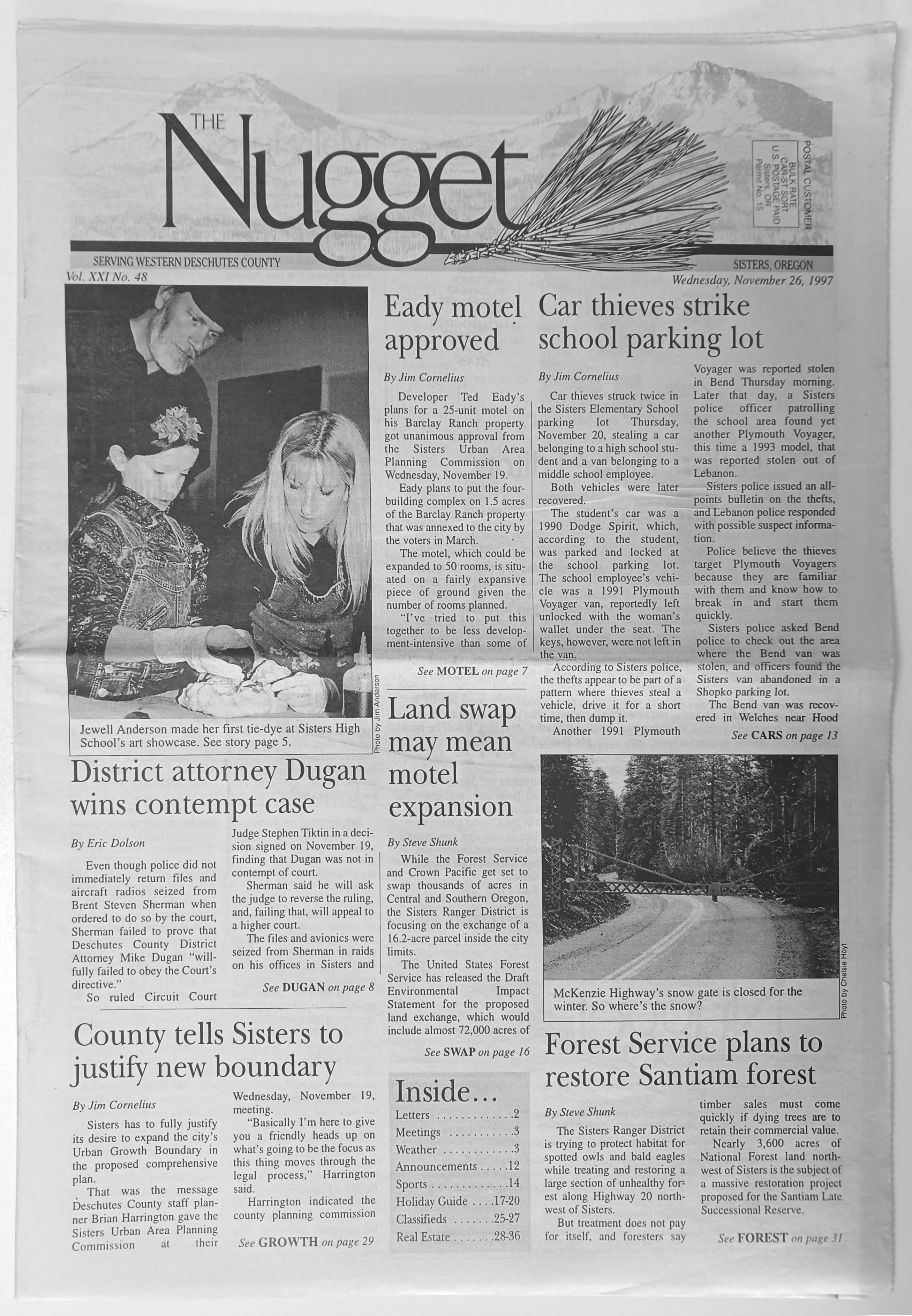 Postmaster: Send address changes to The Nugget Newspaper, P.O. Box 698, Sisters, OR 97759. Third Class Postage Paid at Sisters, Oregon.