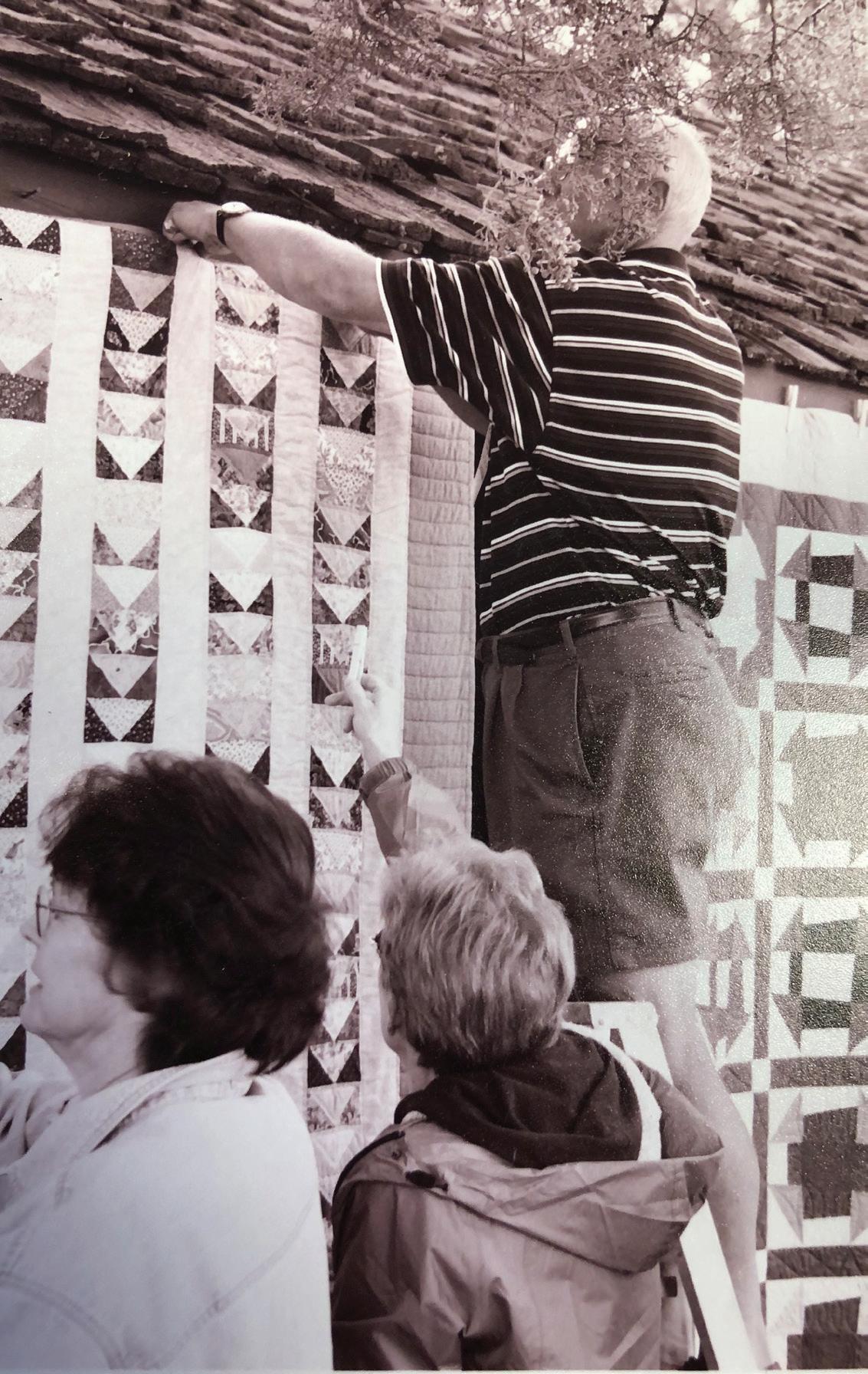 will have her quilts displayed in front of Beacham’s Clock Co. on Quilt Show Saturday. INSIDE! 2023QuiltOutdoorSisters PrograShow m!