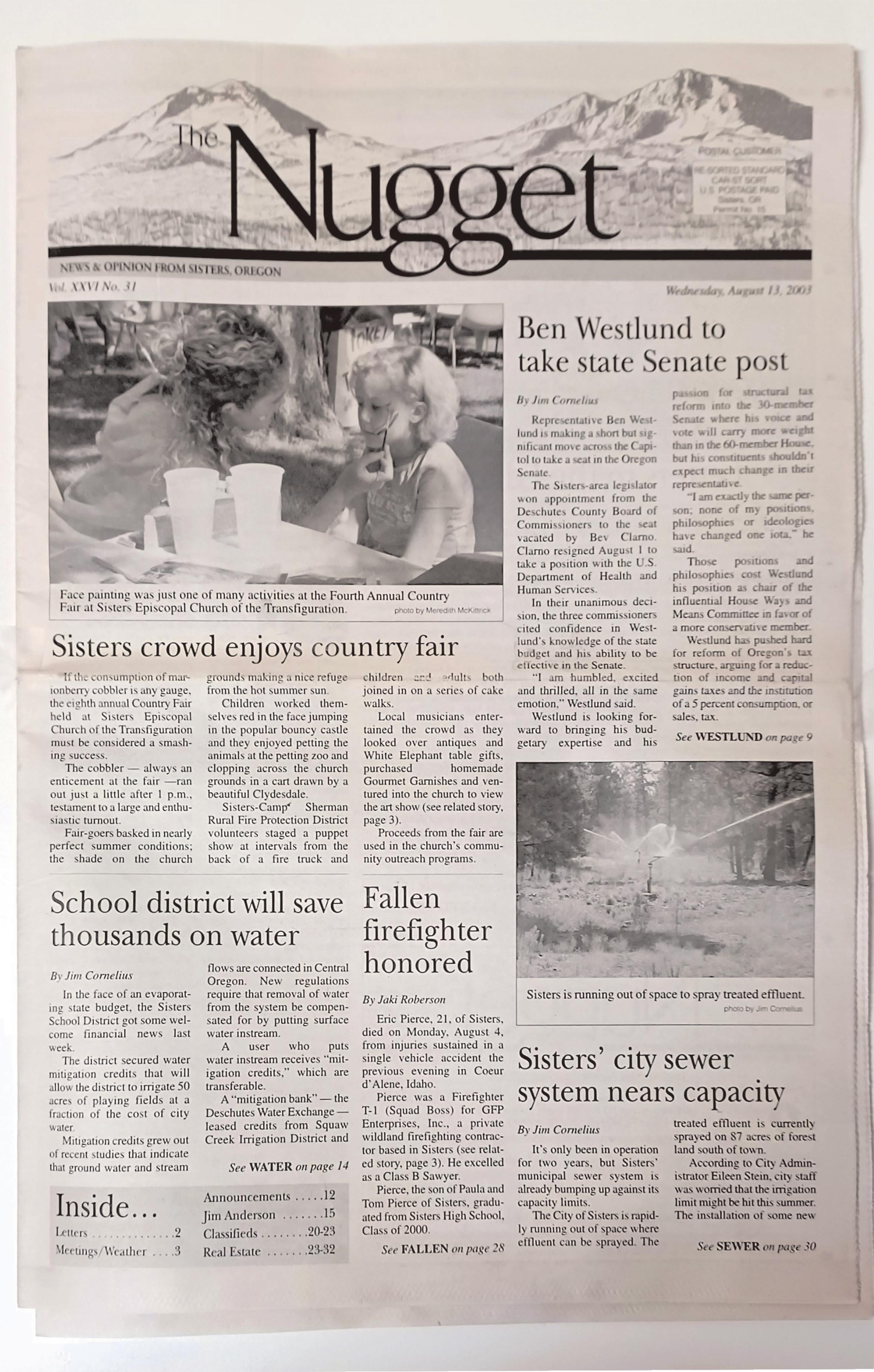 Postmaster: Send address changes to The Nugget Newspaper, P.O. Box 698, Sisters, OR 97759. Third Class Postage Paid at Sisters, Oregon.