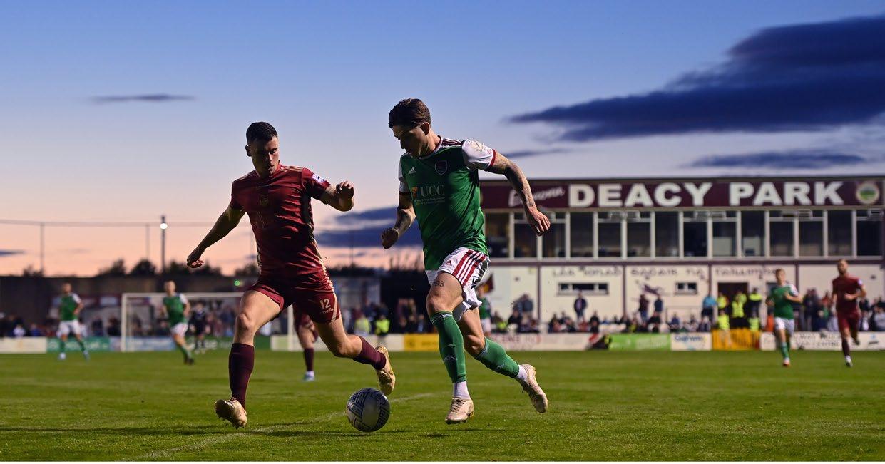 “ Really, it’s all about having an interest, having a drive, and wanting to help your local club succeed. It’s all about having a passion for the club, because if you have that you’ll do anything.”16 September 2022; Ruairi Keating of Cork City in action against James Finnerty of Galway United during the SSE Airtricity League First Division match between Galway United and Cork City at Eamonn Deacy Park in Galway. Photo by Ramsey Cardy/Sportsfile