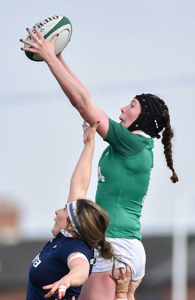 I guess I was just attracted to the idea, rugby seemed very professional in terms of its setup and exposure for women in sport, they were really trailblazing it and I decided to give it a go.”11 March 2018; Aoife McDermott of Ireland wins possession from a lineout ahead of Deborah McCormack of Scotland during the Women's Six Nations Rugby Championship match between Ireland and Scotland at Donnybrook Stadium in Dublin. Photo by David Fitzgerald/Sportsfile