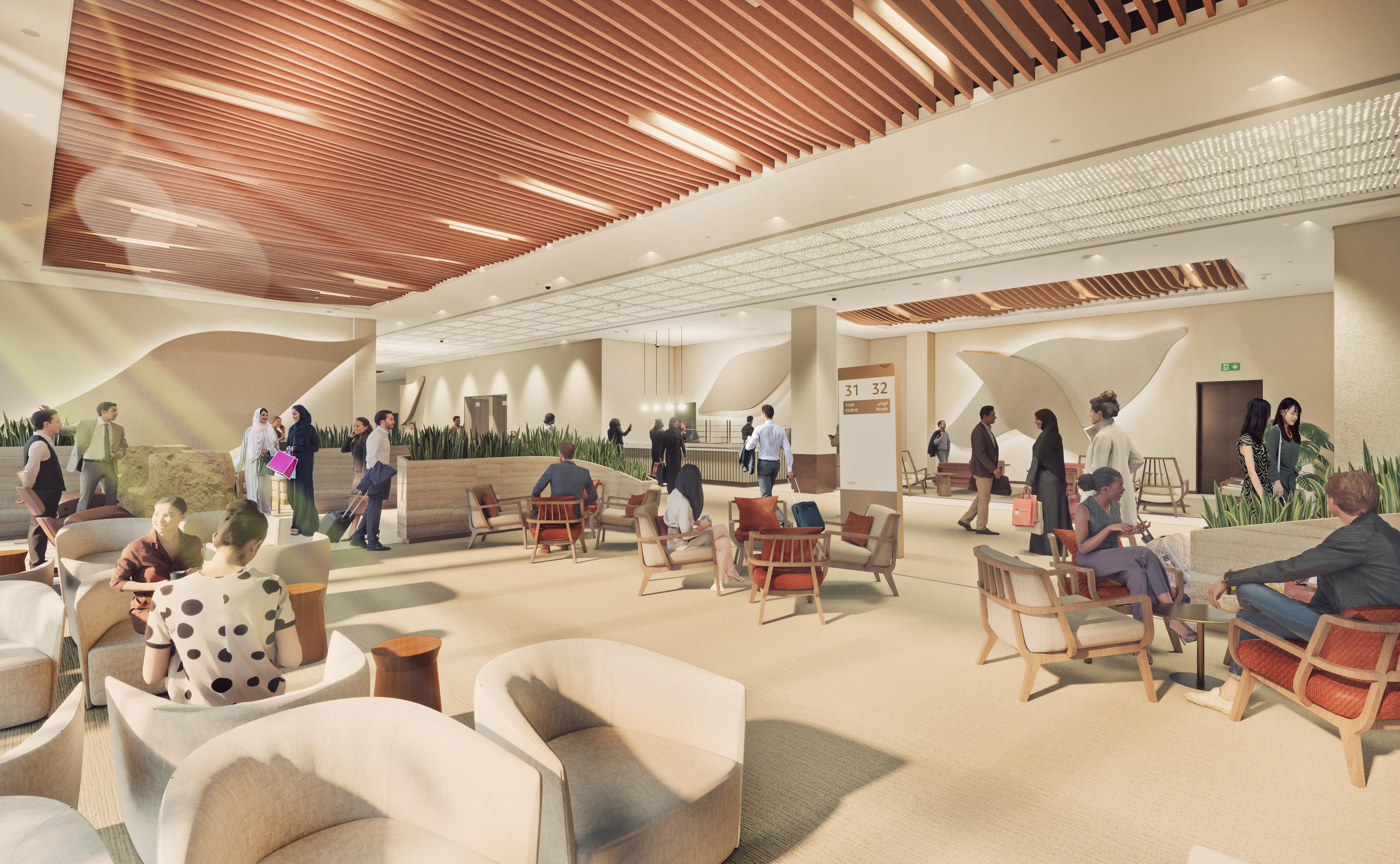 The project encompassed a validation of the original concept design created by Foster and Partners, coupled with a redesign of the affected spaces due to the envelope modifications and changes mandated by the Saudi and aviation authorities. These areas included the check-in lobby, security zone, departures lounge, and mezzanine restaurant, all of which are considered front of house spaces. Additionally, the project involved sourcing and specifying all required materials and FF&E from various suppliers worldwide.