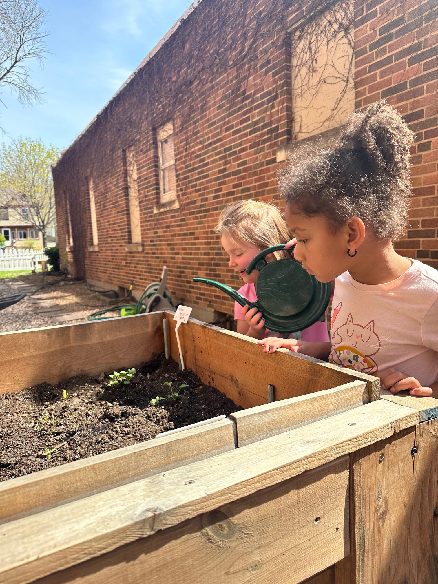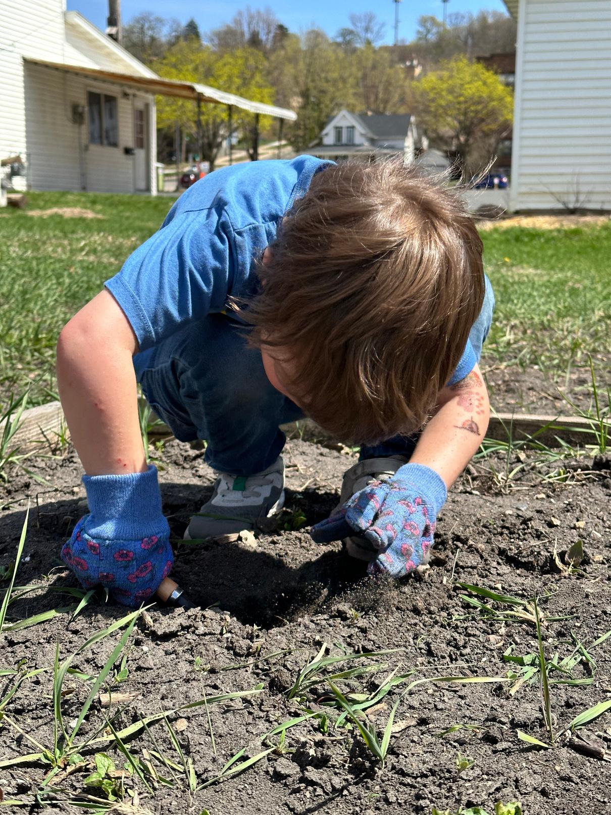 With a mix of starter plants grown on-site, and a generous donation from Terri Anderson of Valley Veggies and Flowers in Lake Crystal, the Preschoolers are hard at work getting our plots at the Community Garden ready for our 3rd year of planting!