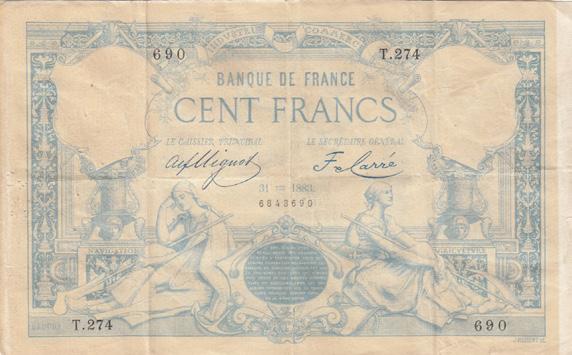 100 Francs Type 188231-01-1883 - Série T.274TTB