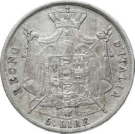 MILANO GOVERNO PROVVISORIO DI LOMBARDIA (1848) 5 Lire 1848 con stella vicina e base spessa Ag 37 mm SPL