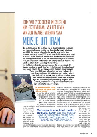 Net op het moment dat de VS en Iran in de clinch liggen, verschijnt een ongemeen boeiend verslag van John Van Eyck over zijn lange verblijf bij zijn Iraanse schoonfamilie. Van Eycks vriendin, Yara, strandde hier begin jaren 2000. In het paradijselijke Vlaanderen, want zo ervaart ze dat. In die tijd Iran verlaten betekende niet vluchten uit een oorlogsgebied, neen, je liet het land achter om je zin te kunnen doen, om vrijheid en echte kansen tot zelfontplooiing te hebben. Dat was toen allesbehalve vanzelfsprekend in Iran. Een tocht die niet zonder gevaren was, en die nu van naaldje tot draadje beschreven werd, door Van Eyck. ‘Ik moest dit verhaal schrijven,’ vertelt hij ons. ‘En het is zoveel meer dan een reisverslag van Yara’s tocht. Het is de ontmoeting van twee culturen. Ik, een doorsnee burger uit de Gentse regio, en Yara, die op haar 18de uit Iran vertrok, haar prachtige thuisland, maar waar de toekomstmogelijkheden helaas veel te beperkt zijn.’ We spreken de protagonisten op de grens met Lochristi, waar ze wonen. Specifieker kunnen we niet zijn, uit veiligheidsoverwegingen. De veiligheidsdiensten surfen naarstig op het internet, naar info over mensen? Nu meer dan ooit, dat zal je begrijpen. Daarom ook dat ik onder een pseudoniem schrijf. Dat de namen die ik gebruik fictief zijn… je kan het risico niet lopen, echt niet. De spanning is te snijden nu. De hele hectiek rond het ‘elimineren’ van de populaire generaal Soleimani, het neerhalen van de Boeing, de wrijvingen onder de burgers en met het buitenland… vele diensten zijn alerter dan ooit, en het leger is continu in staat van paraatheid, om het maar zo te zeggen. Het was altijd al op eieren lopen, want Iran heeft sinds de revolutie twee staatkundige