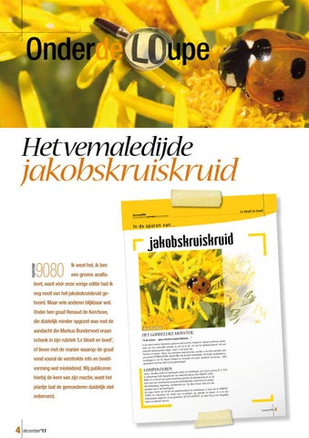 beet, want vóór onze vorige editie had ik nog nooit van het jakobskruiskruid gehoord. Maar vele anderen blijkbaar wel. Onder hen graaf Renaud de Kerchove, die duidelijk minder opgezet was met de aandacht die Markus Bundervoet eraan schonk in zijn rubriek ‘Lo bloeit en boeit’, of liever met de manier waarop: de graaf vond vooral de verstrekte info en beeldvorming wat misleidend. Wij publiceren hierbij de kern van zijn reactie, want het plantje laat de gemoederen duidelijk niet onberoerd.