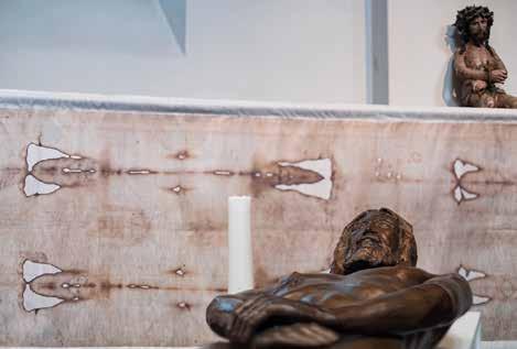 het driedimensionale beeld van de man wiens afdruk de lijkwade toont. Als toemaatje bevat de tentoonstelling kopieën van andere relieken, zoals de doornenkroon die thans bewaard wordt in de Notre Dame te Parijs, geselwapens, kruisnagels en oogmunten.