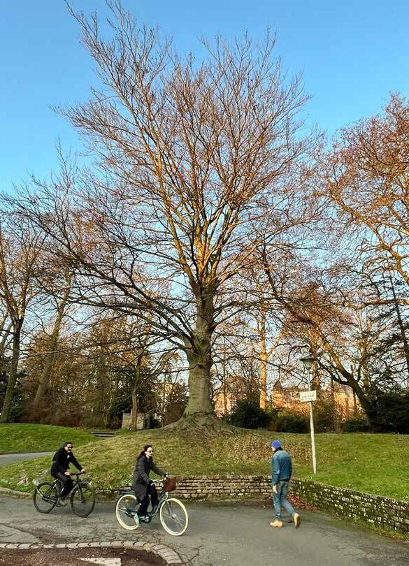 maar dan door de natuur zelf. Mochten bomen op een podium kunnen springen om zich te laten zien, te protesteren of om hun visie op het leven weer te geven, dan zou deze beuk in het Citadelpark van Gent een schitterende woordvoerder zijn. Hij groeit op een talud van 2 meter hoog, van drie zijden goed zichtbaar. Van zijn standplaats, in het midden van een stad met dikwijls heel lage grondwaterstanden, lijkt deze boom geen last te hebben. De boomwortels en onderstam imponeren want zijn mooi te bekijken op ooghoogte. Het is vooral zijn ‘presence’ die meer dan de moeite is. Je kunt niet anders dan er naar opkijken. Te bewonderen tussen het Smak, het Kuipke en de nieuwe stadsbuurt De Leopoldskazerne.