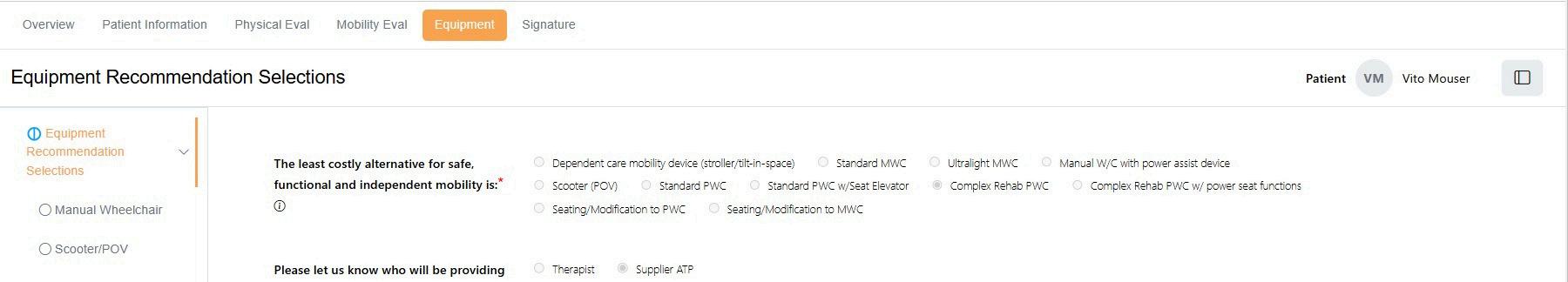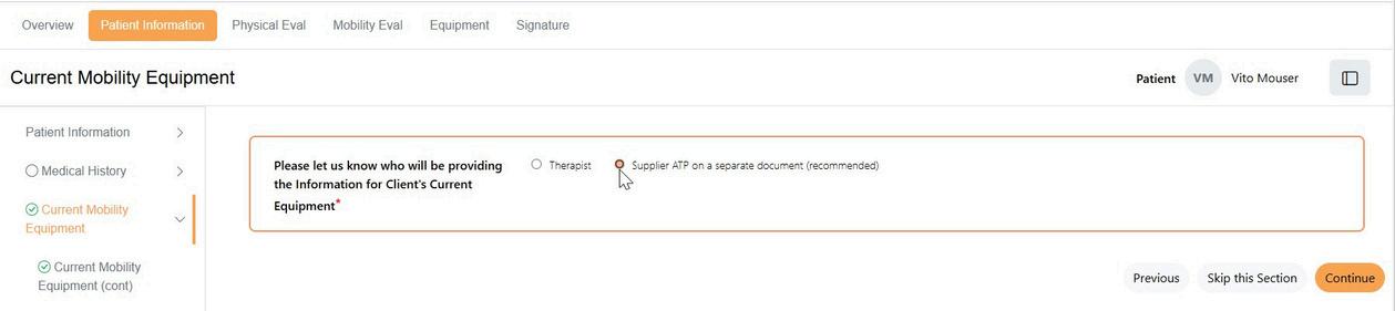 ATP Collaboration: when the ‘Submit for Signatures’ button is clicked, if the clinician selected ‘Supplier ATP’ to complete the Equipment Recommendation’ section and the ATP has NOT completed the deferred question, a message will display. The ATP will be required to complete that section prior to sending the assessment for signature.