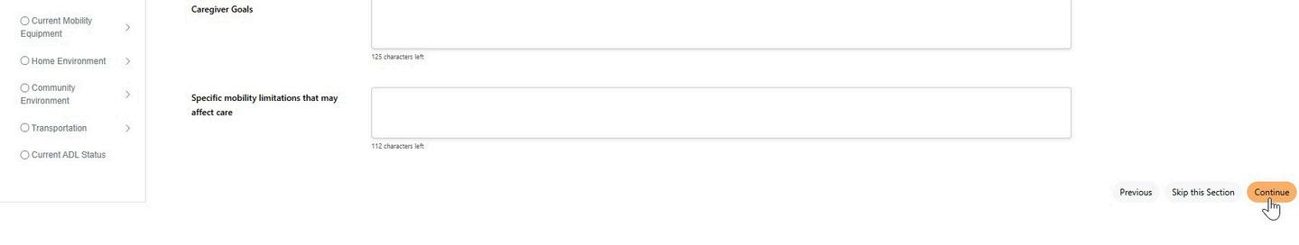 Required questions will be marked with an asterisk(*) and will highlight if not completed when clicking ‘Continue’. If the information is unknown, the user may click ‘Skip this section’ to temporarily bypass required questions The section status will remain in progress NOTE: Upon attempting to sign the document, the user will be asked to complete all skipped but required fields via a ‘Guided Experience’.