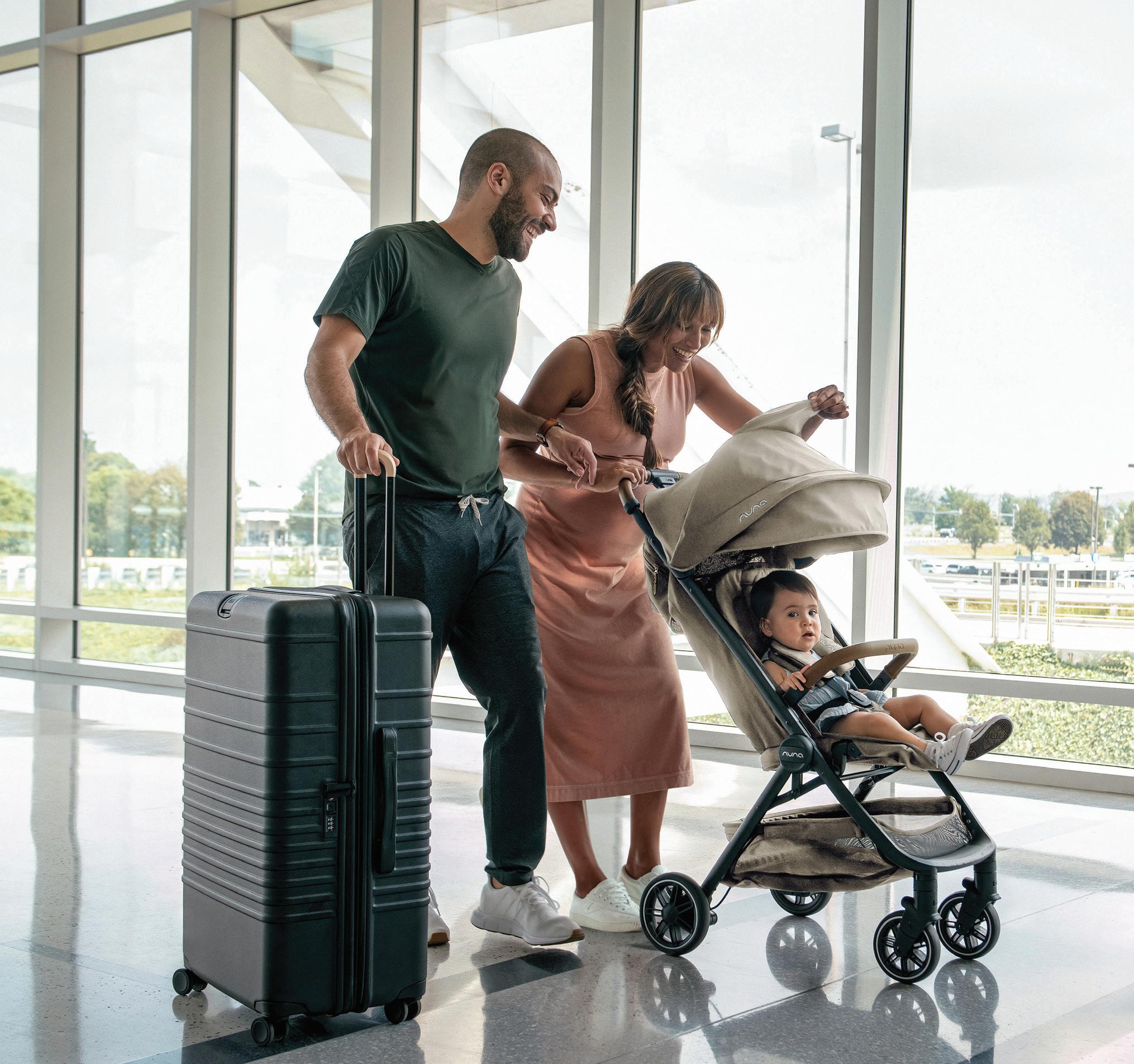 Keep your Nuna TRVL stroller protected on your next adventure with the TRVL transport bag. The bag's lightweight design allows it to be carried in multiple ways. It can be carried using the top or side handles or worn as an adjustable backpack— for hands-free travel. It even has a luggage tag window to call it your own. Consider yourself ready to discover the world in style.