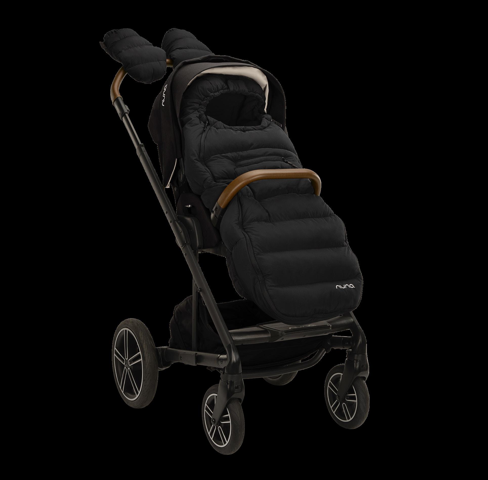 Ultra-plush footmuff and mitten set is crafted with premium cashmere blend interior and compatible with all Nuna strollers.