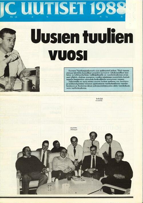 Julkaistiin ensimmäinen Suomen Nuorkauppakamareiden lehti ja sillä tiellä ollaan yhä, JC-uutisista Meriitin kautta Johtajaan. Historian havinaa lisää sivuilla 14–15!