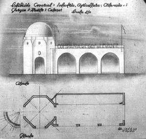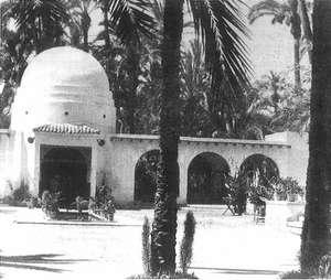 celona y de Sevilla de 1929, su ordenación es consecuente con el espíritu neoárabe que presidía toda la obra realizada por Serrano Peral en 1946, como consecuencia de la Exhibición comarcal. Se construyeron 3 pabellones: el principal (el único que queda hoy día), el de la Compañía Riegos de Levante y el del Sindicato Vertical. Son un tipo de construcciones que intentaban ser arabizantes en armonía con las presuntas características «moras» de los huertos de palmeras y de la arquitectura de Elche. La ornamentación neoárabe, nacida con los revivals del siglo XIX, se extiende por la ciudad y por el Campo de Elche a principios de siglo, y en la posguerra en contró un fervoroso admirador en la figura de Serrano Peral que supo aportar al neoarabismo unos elementos mediterráneos (fluideza del espacio y el color) y un cierto gusto racionalista (claridad de la composición y la simplicidad de los volúmenes y fachadas) y la claridad constructiva