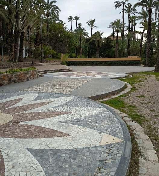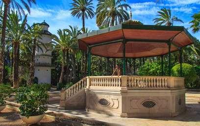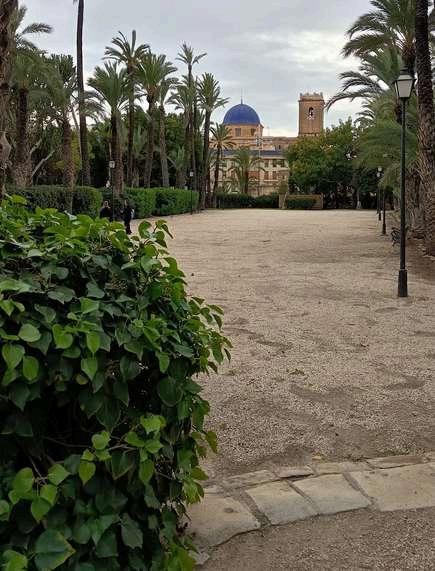 El Parque Municipal, con una extensión de 20 kmt2 y alrededor de unas 1600 palmeras, fue diseñado en 1946 por el arquitecto ilicitano Pérez Aracil y es resultado de la unión de varios huertos de palmeras que fueron cedidos en testamento a mitad del s.XVII por el propietario original, D Nicolás Caro, a la Patrona de la Ciudad, la Virgen de la Asunción Por lo que es la Virgen su propietaria actual.