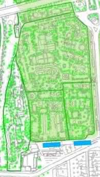 , al este por el Paseo de la Estación, al norte por el Puente del Ferrocarril y al sur por importantes equipamientos, como: el Palacio de Altamira o el MAHE. Ocupa una posición central, ligada al río y al casco urbano, actuando como eje verde histórico que estructura la ciudad.