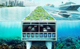 A floating box with an impervious, flexible curtain anchored to the seabed forms a highly adaptable seawall system. This reduces construction costs and offers flexibility for future redevelopment projects. Using less concrete and earth, it reduces ecological disturbance and is more environmentally friendly. Its height is also adjustable to ensure long-term adaptability.