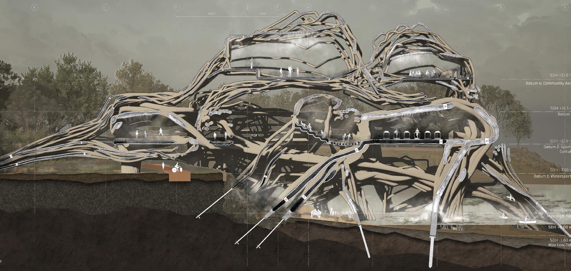 Students engage in a four years programme, learning modes and methodologies of reading and imagining space, defining program, investigating atmospheres, enabling alternative and emancipatory modes of living and making place. Emphasising the need for measure-and-care, they are asked to reflect on how to operate and devise spatial strategies whilst approaching questions pertaining ecology, fostering tactful ethics and promoting sustainable practices. The tropical, diverse and technologically oriented setting of Singapore offers an interesting base to pursue studies foregrounding innovation and inclusivity, aiming through architecture at devising spaces and producing relations in support of more sustainable modes of living, of diversity, and aiming at constructing frameworks for horizontal action and community-making. The local settings of Singapore offer a rich environment whence to start mapping and understanding the global dynamics affecting the planet, its deep and ever-evolving ecologies, the complex fabric of the living, the human and more-than-human actors involved. The global>to<local pendulum allows us to keep reflecting on how to locate and engineer the human in relation to nature, ultimately prompting a multi-scalar understanding, and formulating new ways to discuss ethically what we mean with such terms.