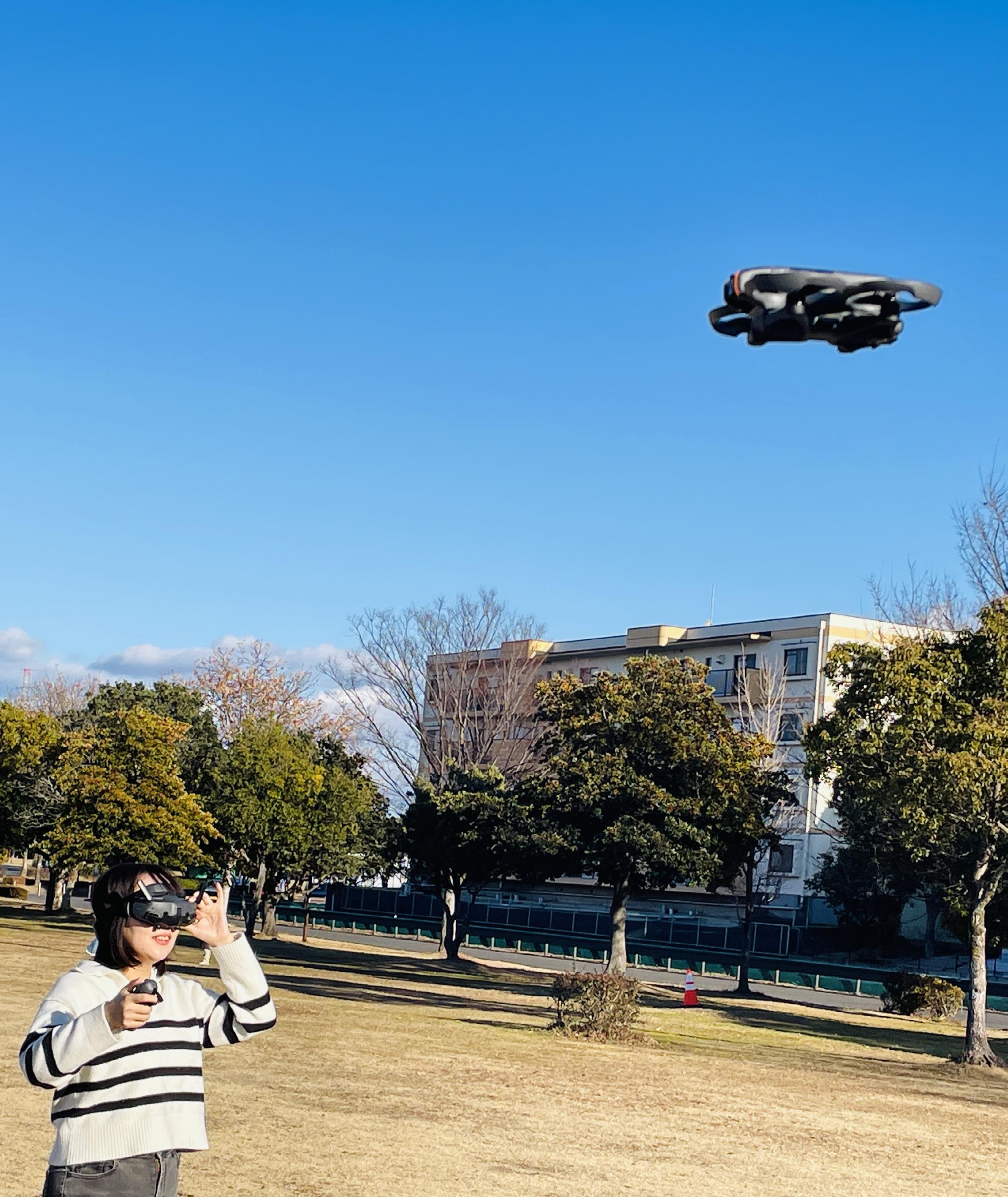 Assistant Professor Bao Naren, founder of AquaAge, conducting a drone test flight in Japan.
