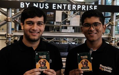 Enterprise, they also spoke about the support their received in their early beginnings. “Pawsible Foods would not exist without NUS Enterprise, very interestingly, Enterprise gave us our first check ever under the VIP Impact Grant, about $10,000. That acted as a stepping stone to future grants and increasingly, we were awarded by DPM Lawrence Wong, which was a very brilliant moment for us,” said Armaan. The duo started Pawsible in 2022 and is currently incubating at The HANGAR, NUS Enterprise’s on-campus base for NUS start-ups and entrepreneurs.