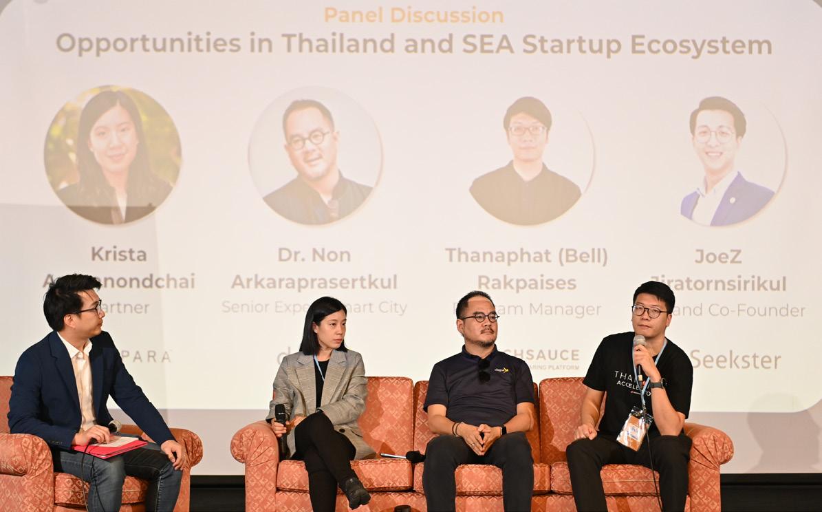 Moderated by Mr Chatchanart Jiratornsirikul, the CEO and Co-founder of SeekONE Holding who is better known as JoeZ, and Ms Krista Arunanondchai, Partner at Expara, the panel discussed challenges faced by local start-ups, such as the dominance of corporate venture capital and the need to attract seed-stage investors. They acknowledged the ecosystem’s potential including the importance of government support by agencies like Thailand’s Digital Economy Promotion Agency.