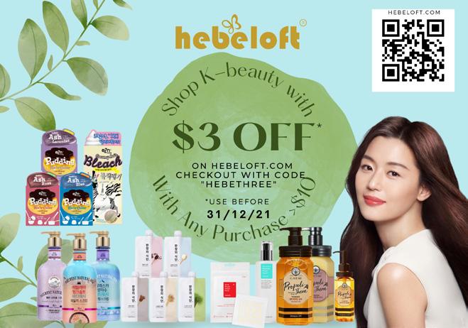 • $3 off with minimum spend of $10 for all NUS alumni, staff and students using the code HEBETHREE upon checkout. hebeloft.com