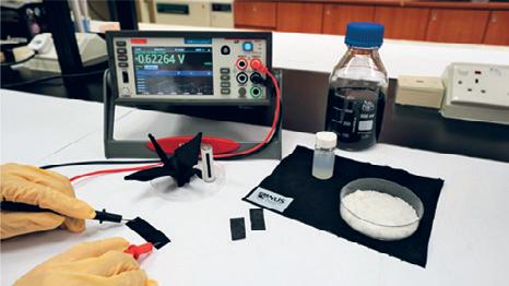 BY HARNESSING MOISTURE IN THE AIR AROUND YOU WITH JUST EVERYDAY ITEMS LIKE SEA SALT AND A PIECE OF FABRIC, or even powering everyday electronics with a non-toxic battery that is as thin as paper. A team of researchers from the College of Design and Engineering (CDE) has developed a new moisture-driven electricity generation (MEG) device made of a thin layer of fabric — about 0.3 millimetres (mm) in thickness — sea salt, carbon ink and a special water-absorbing gel.