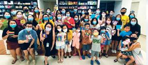 Ms Foo with staff and volunteers at a Chinese New Year celebration.