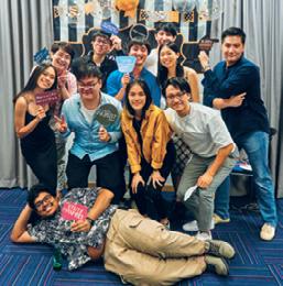 Alumni and undergraduates proudly displaying the NUS Cares banner at the event.