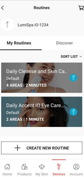 Tik op de huidverzorgingsroutine die je naar je LumiSpa iO wilt