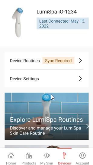 Zodra je apparaat gekoppeld is, selecteer je jouw LumiSpa iO