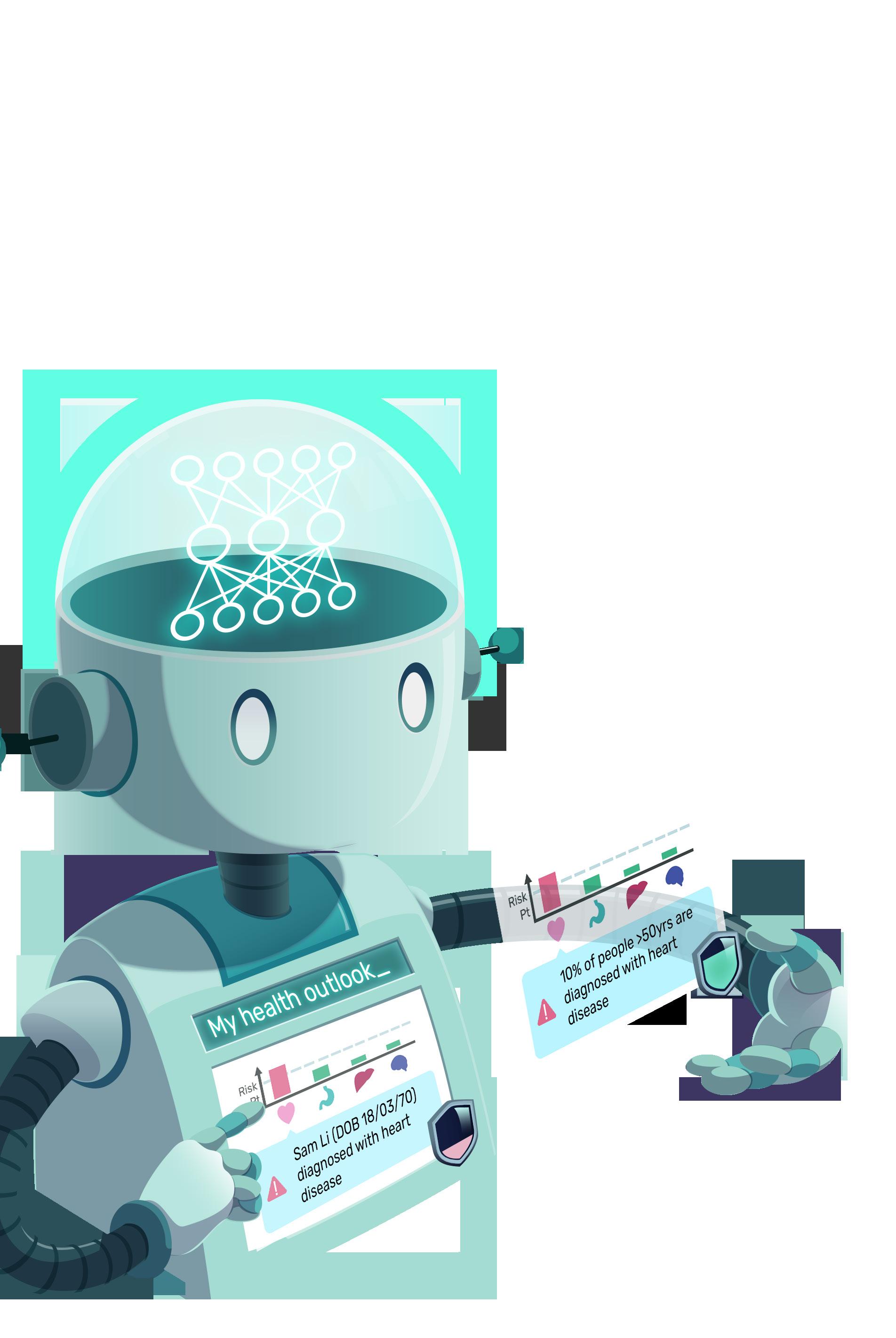 Our research1, 2, 3 shows that model parameters and predictions made by machine learning models can reveal signifc nt o nt of infor tion about their training data. For example, in a language model, a user can infer which sentences were most likely used during the training. This violates data privacy, and may harm the individuals who contribute the training data – especially if the data contains personal information.