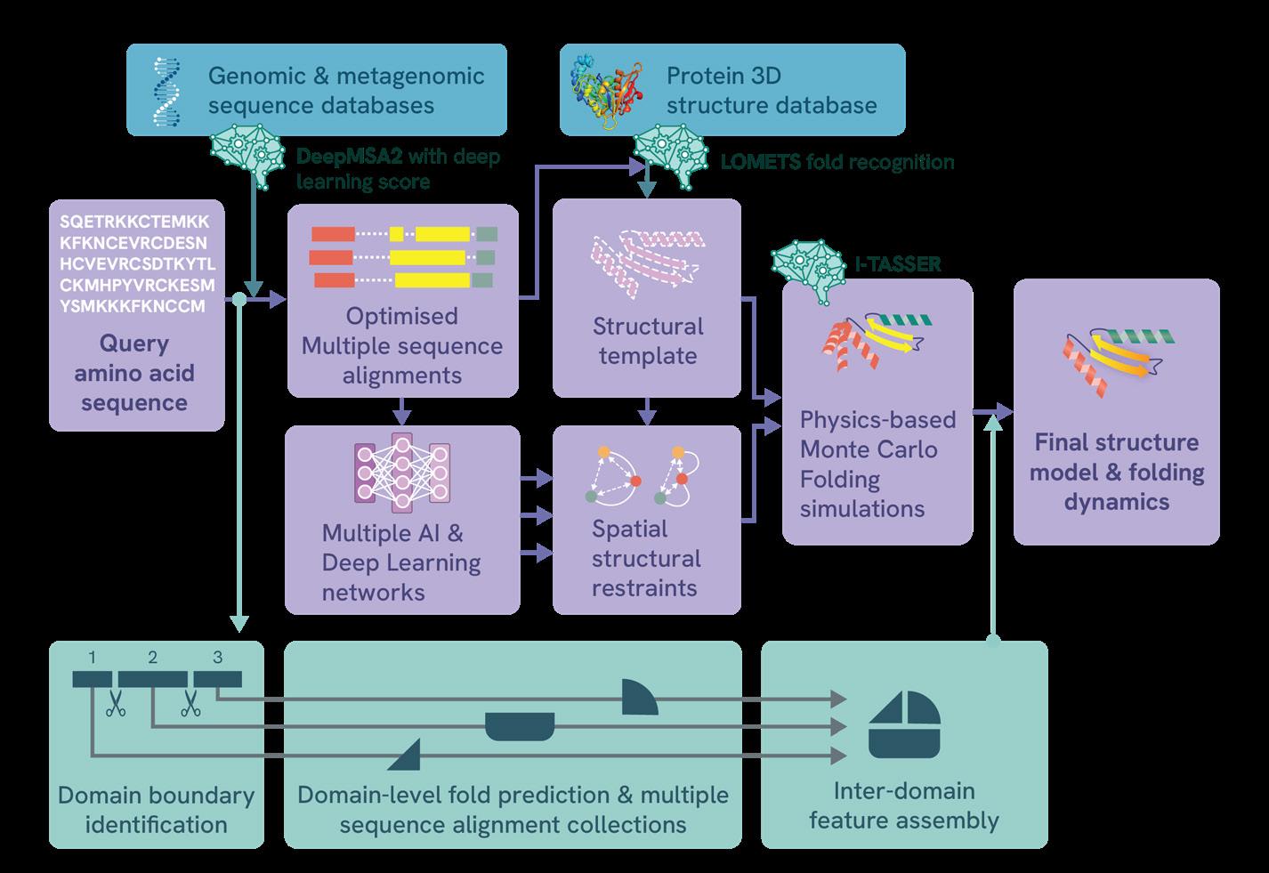 D-I-TASSER is a hybrid deep learning and physics-based tool that can accurately model human protein structures, especially complex, multi-domain proteins