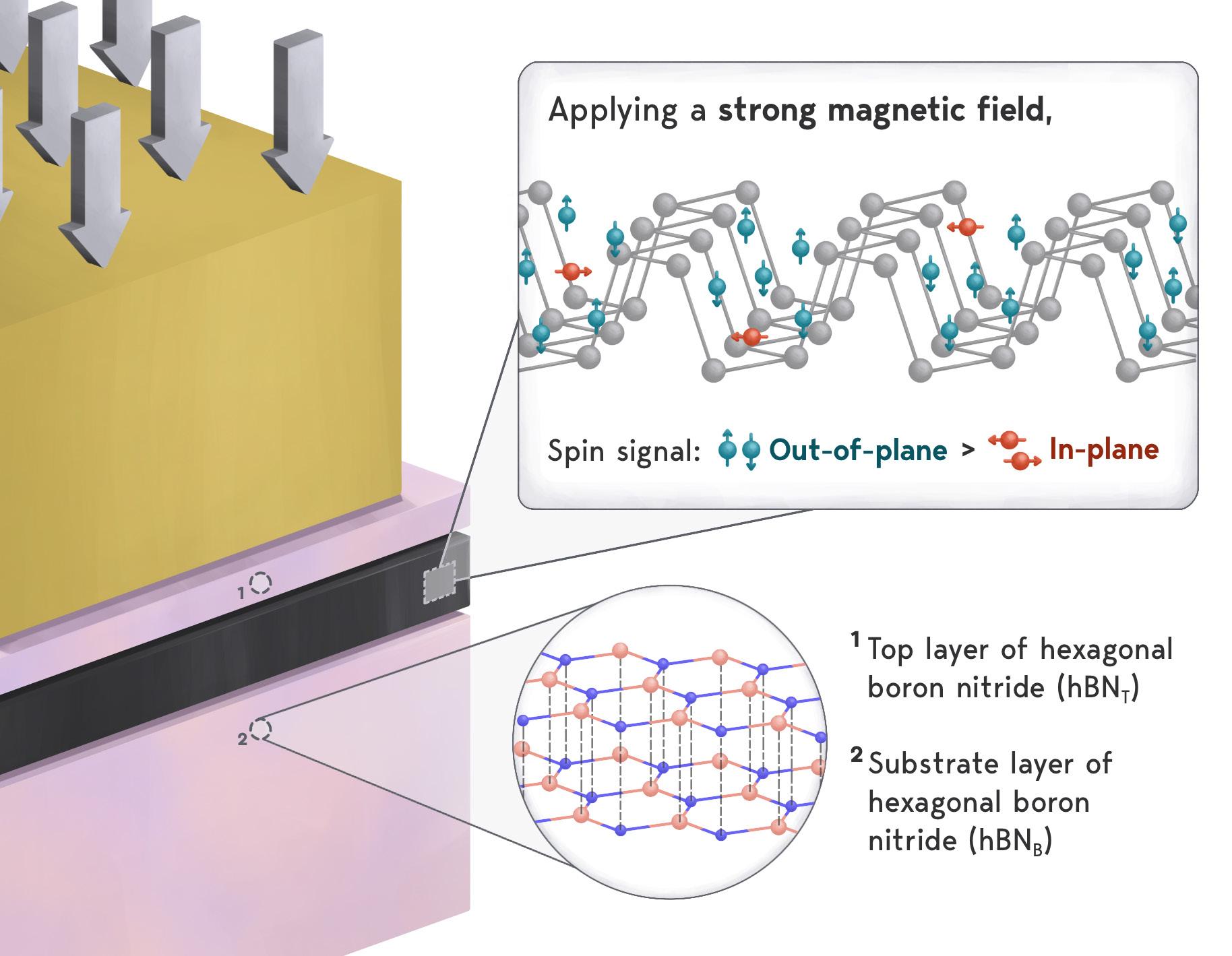 The team found that applying a strong magnetic field (B > 0.25 T) resulted in a large increase in the spin signal, with a five-fold enhancement in the out-of-plane spin signal