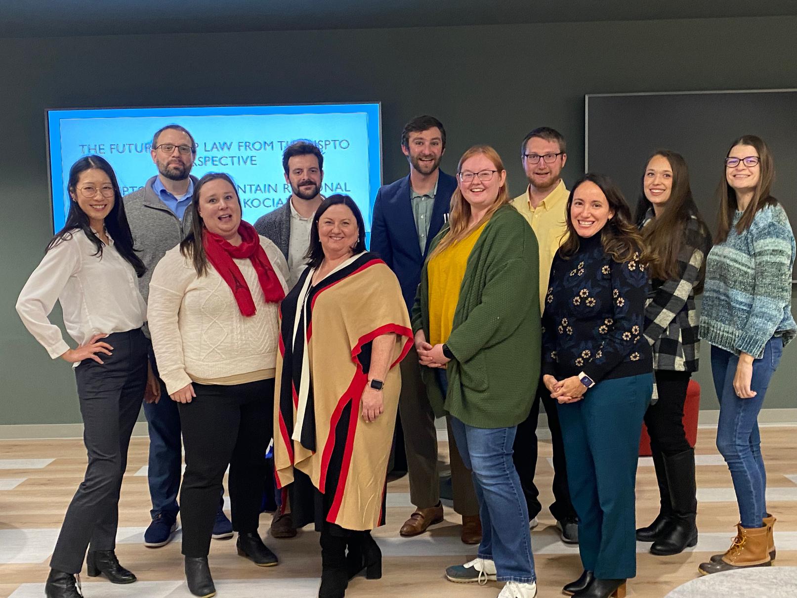 Later in the day, two additional related events were held. A networking reception at the Mill on Nebraska Innovation Campus allowed the speakers to continue the conversations begun during the panel and meet with local businesses with the aim of recruiting company partners for the GEM Fellowship A second event was held at East Campus, as USPTO’s Kocialski sat down with members of the Student Intellectual Property Law Association (SIPLA) SIPLA and NUtech Ventures co-hosted the event, held at McCollum Hall