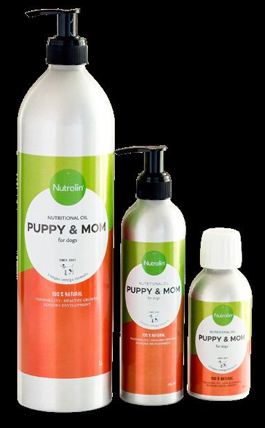 Nutrolin® PUPPY & MOM, för mig är det viktigt att ge valparna bästa förutsättningarna i livet. Mina valpar har haft strålande pälsar och hud, samt varit mycket välmående och snabblärda, liksom födda med kunskapen.