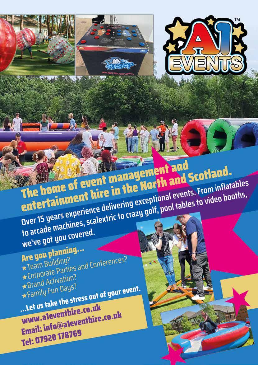 Verdant, Works, West Henderson Wynd, DD15BT 01382 309060 | conferences@dundeeheritage.co.uk www.verdantworks.co.uk • Events that get people talking • Marketing and promotion specialists • Expert venue finding • Full guest and supplier management • Over 10 years’ exhibition experience 0790 342 2325 www.strelitzia-events.com Tourguide systems for tours, presentations, interpretation Headsets for silent meetings with talkback for every delegate Audioguides for self-guided tours & exhibits 01244 456899 www.applesound.com @tourguideSYS SALES, HIRE and EVENT SERVICE City centre venue - 8 Bedroom hotel with 2 separate floors dedicated to hosting bespoke customised events and celebrations. 0151 236 6676 | info@racquetclub.org.uk www.racquetclubhotel.co.uk