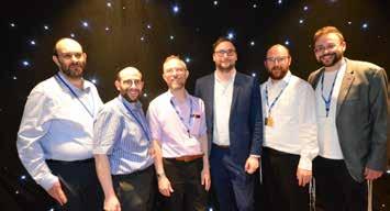 CHIEF RABBI WITH BFBIU TRUSTEE, DAVID GRADEL (LEFT); BFBIU CHAIR, ROMIE TAGER KC (CENTRE-RIGHT); BFBIU DIRECTOR, MAX DUNBAR (RIGHT)